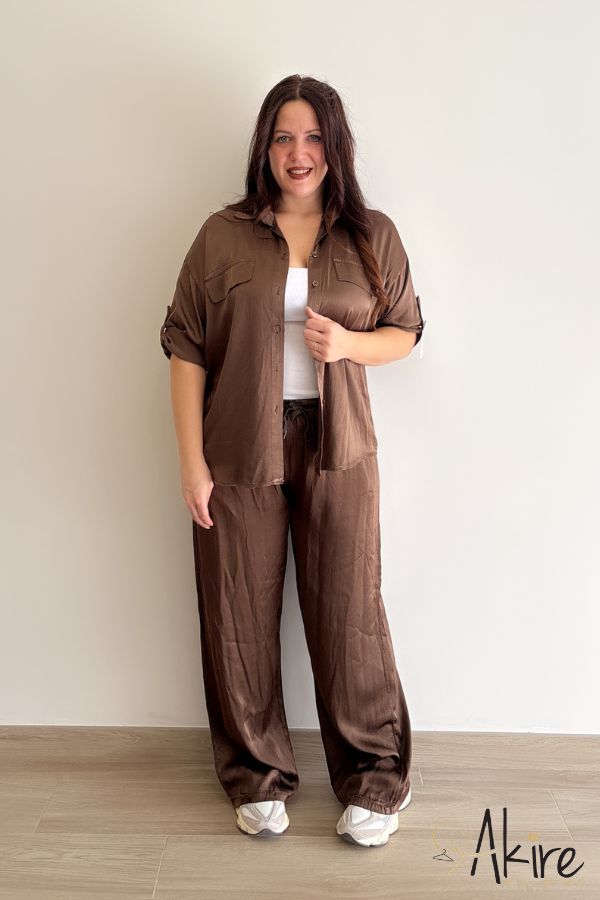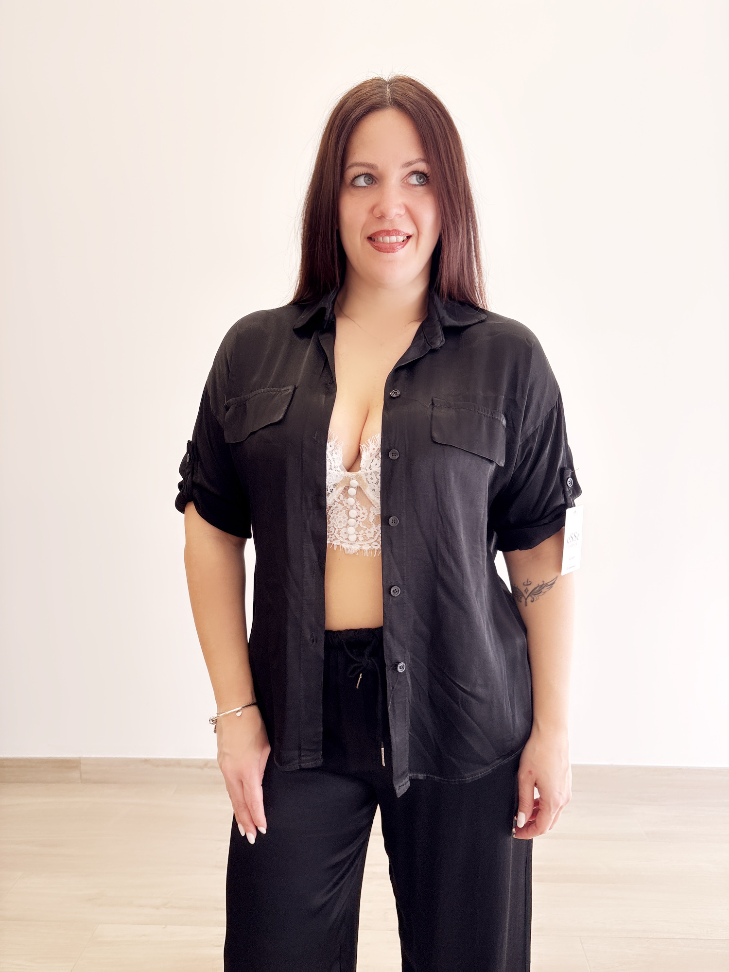 Camicia in viscosa, manica a tre quarti, regolabile.