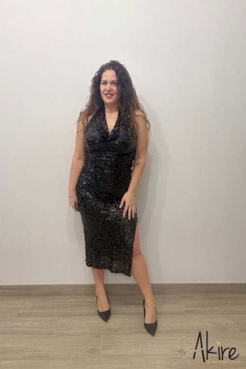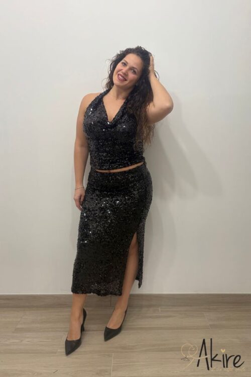 Canotta elasticizzata in paillettes super brillante, bretelle regolabili ed elastiche.