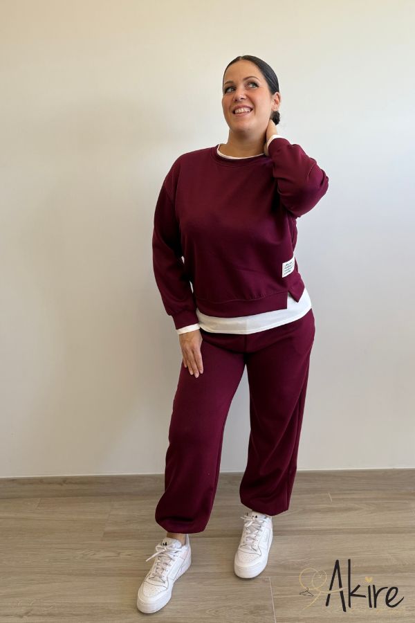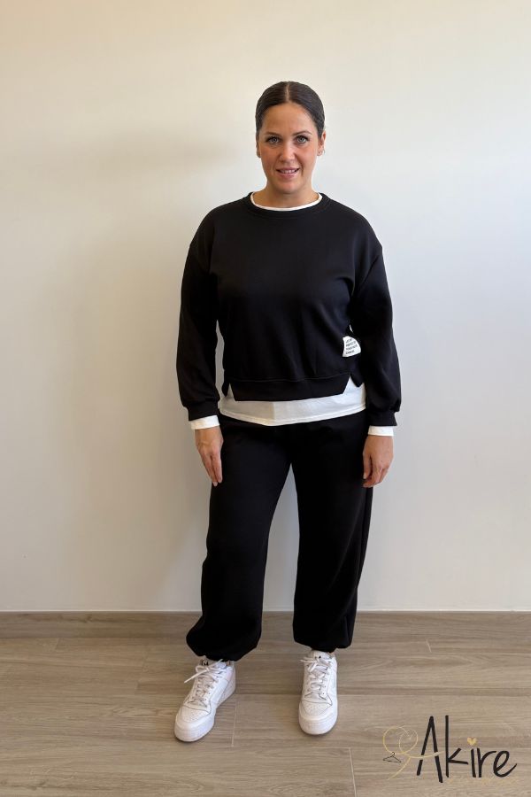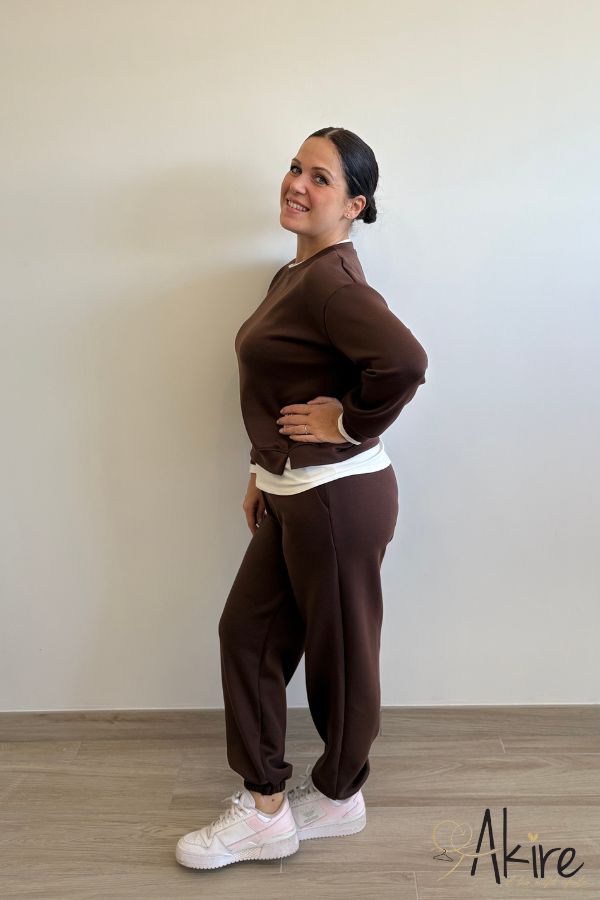 Completo tuta, misto viscosa. Con polsino al fondo del pantalone per un fit moderno, è perfetta per ogni momento di relax o per un look casual ma curato.