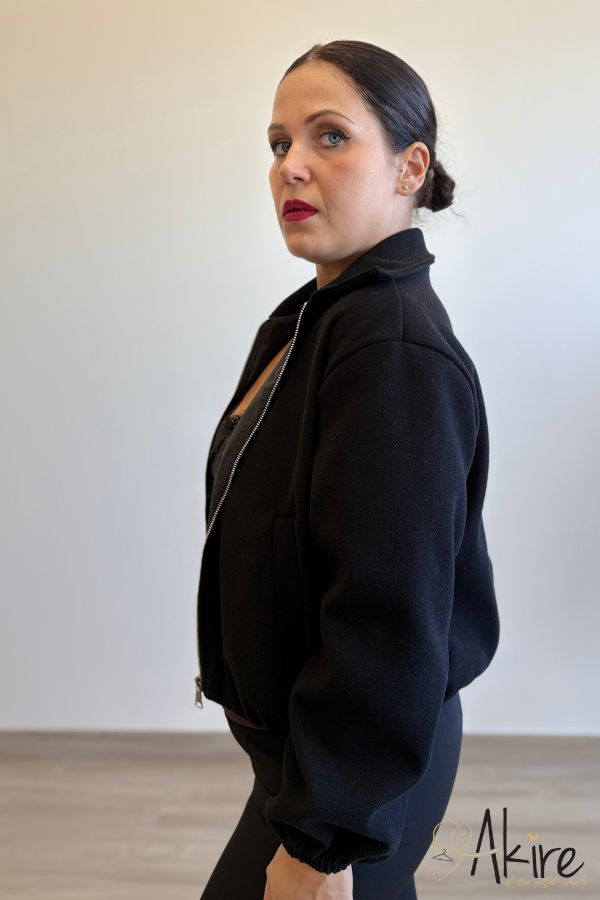 Giacca di tendenza, pesantezza media. Elastico morbido al punto vita.